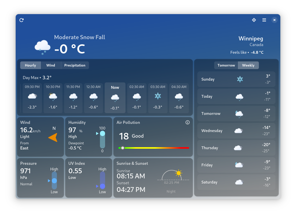 - Displays real-time temperature, humidity, wind speed, UV index, pressure and more