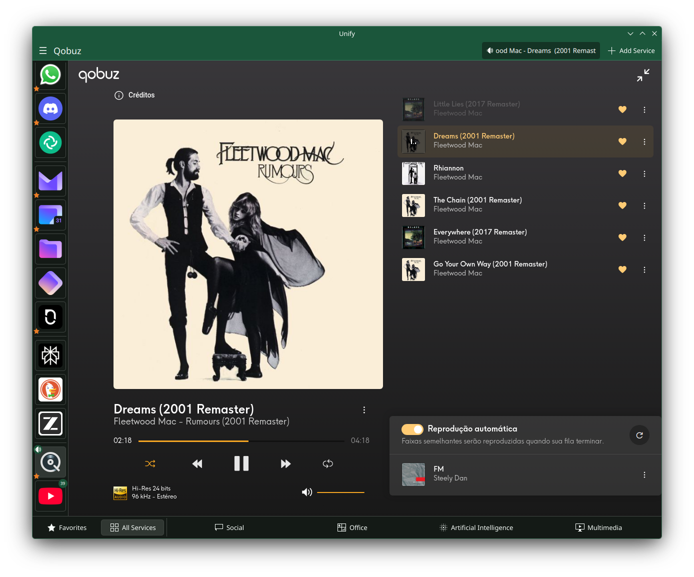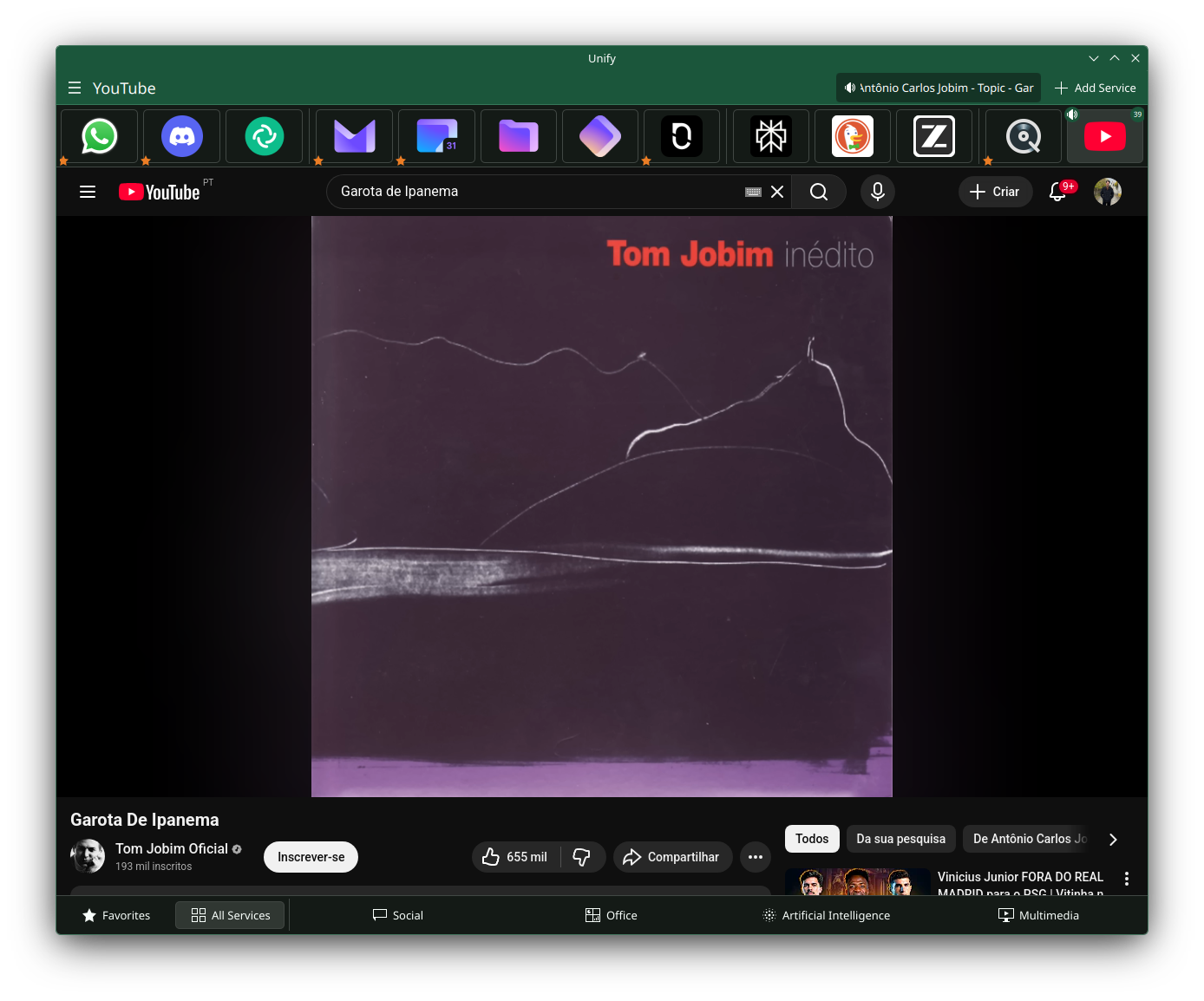 Unify is a web app aggregator that brings all your favorite web applications (Spotify, YouTube, Gmail, WhatsApp Web, and more) into a single, desktop-native window.