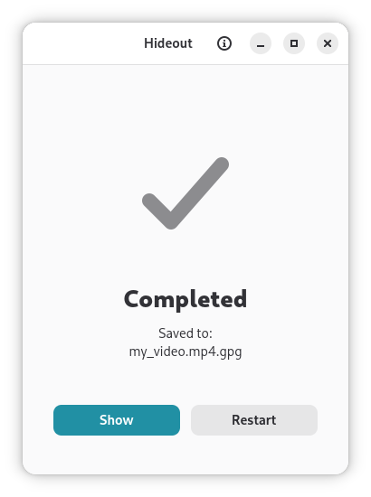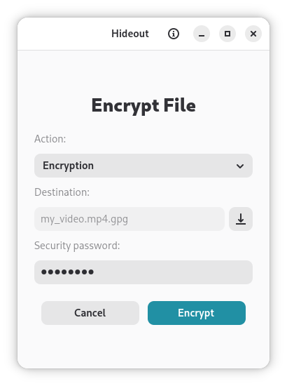Hideout is a minimal and secure desktop application for file encryption and decryption, powered by GnuPG. It provides a simple drag-and-drop interface to protect your sensitive files.