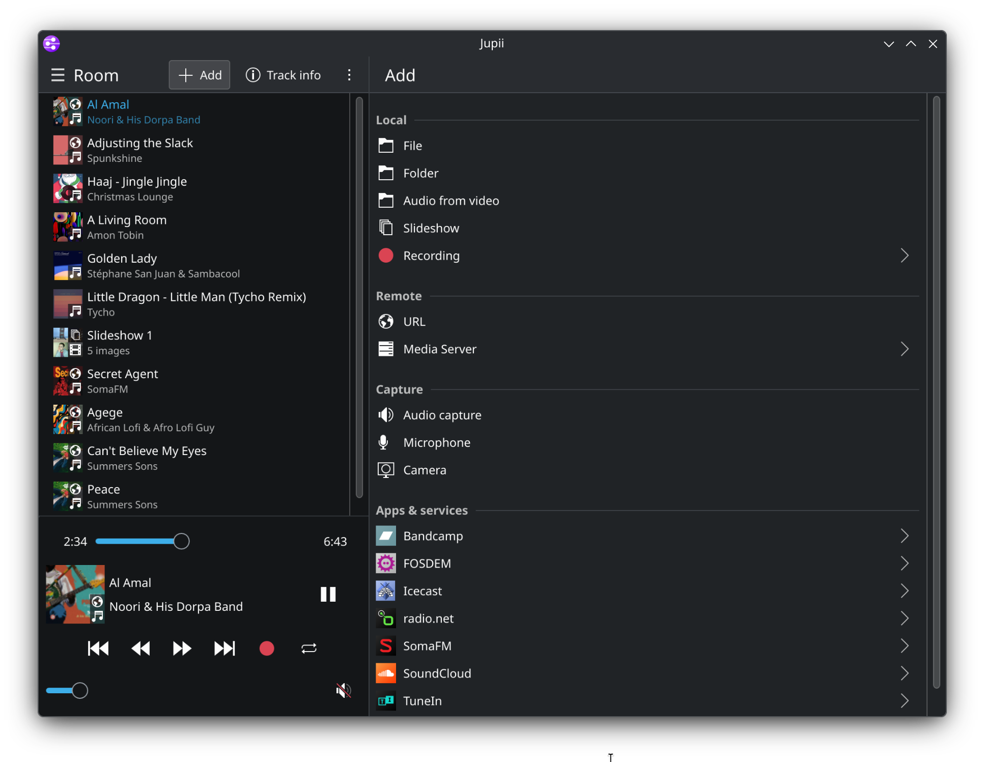 - support many different internet services as media source (Bandcamp, SoundCloud, YouTube and many more)