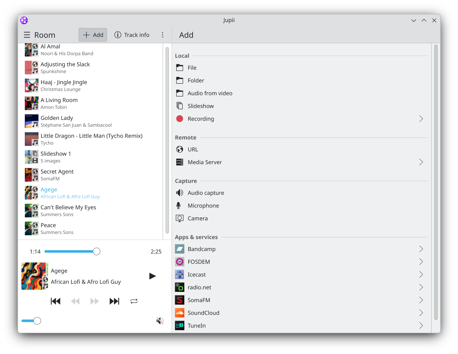 - Playback control mode: Using Jupii, you connect to the player device (e.g. smart speaker) and transfer media from your phone/computer to this device.