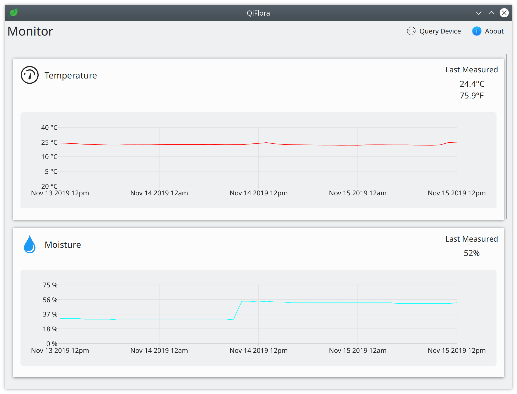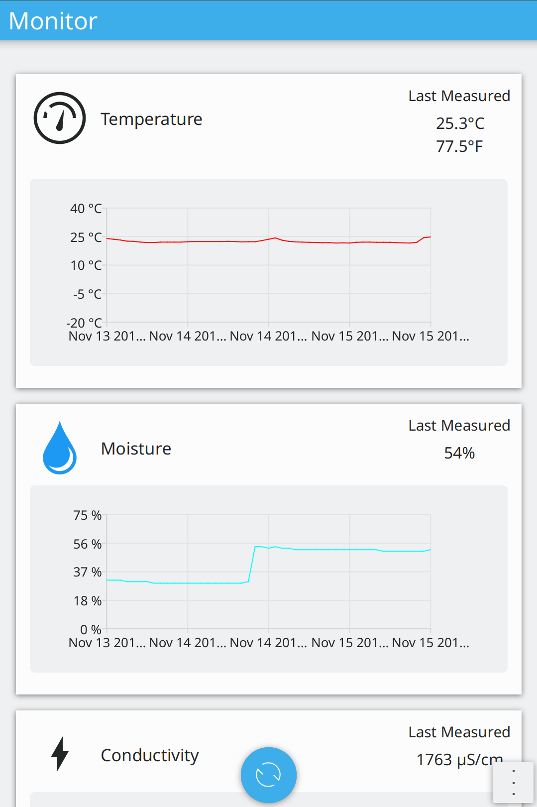 Plants using this device will have their data logged when app is used and graphed to better monitor plant health.